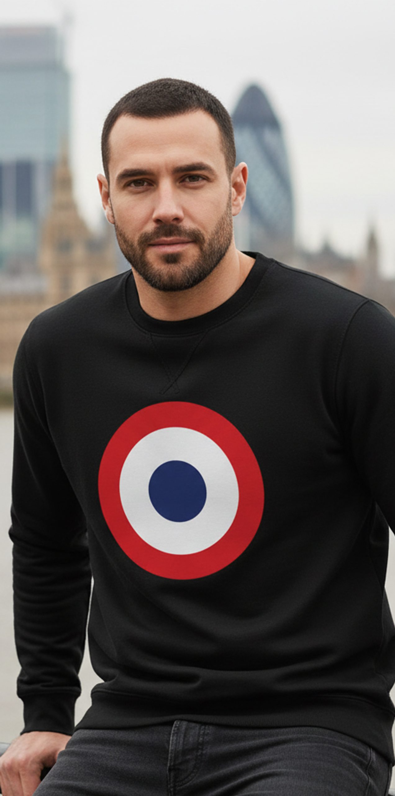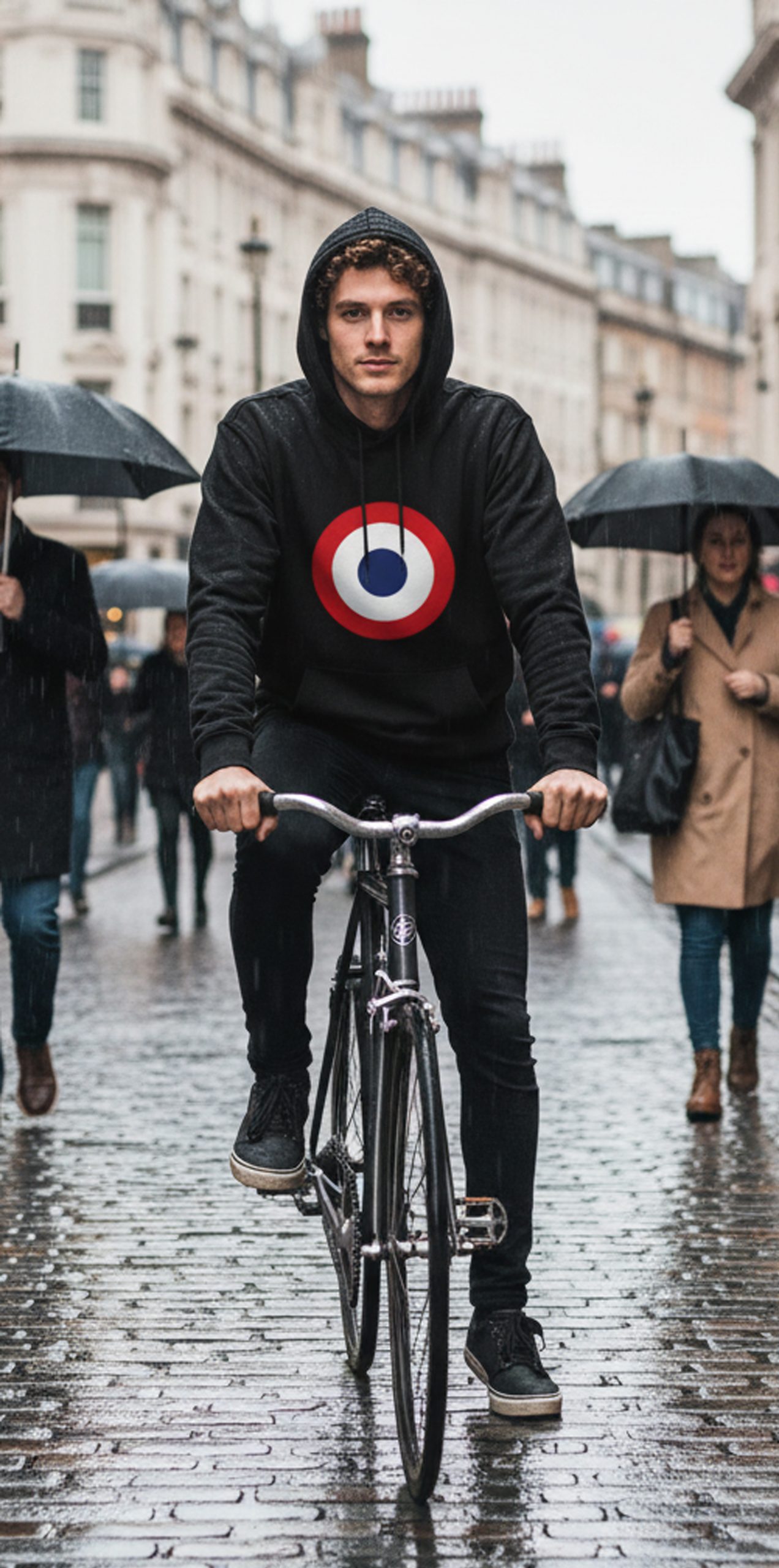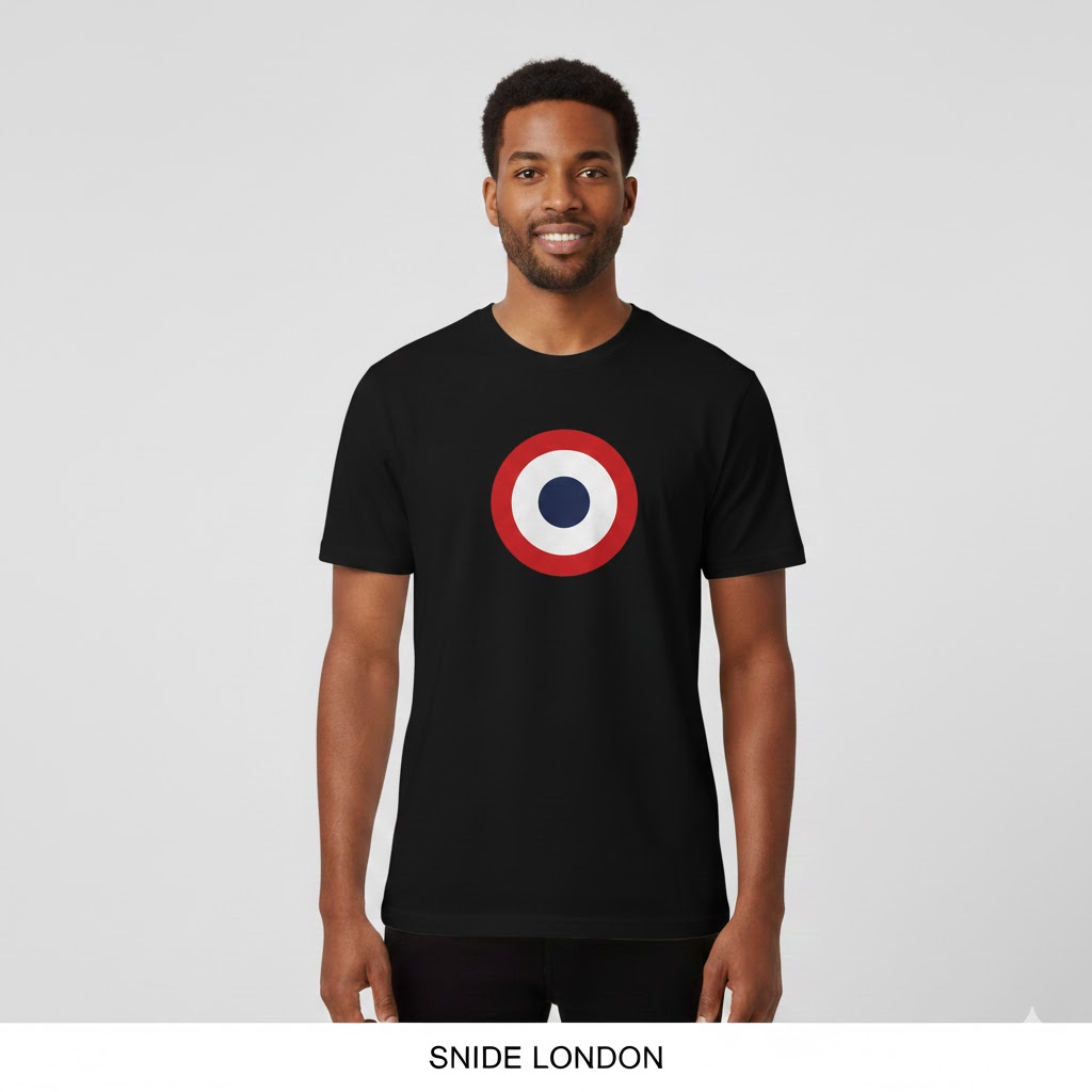 The inverted insignia design appears on a black sweat, a black hoodie, or on a choice of black or white tees.
